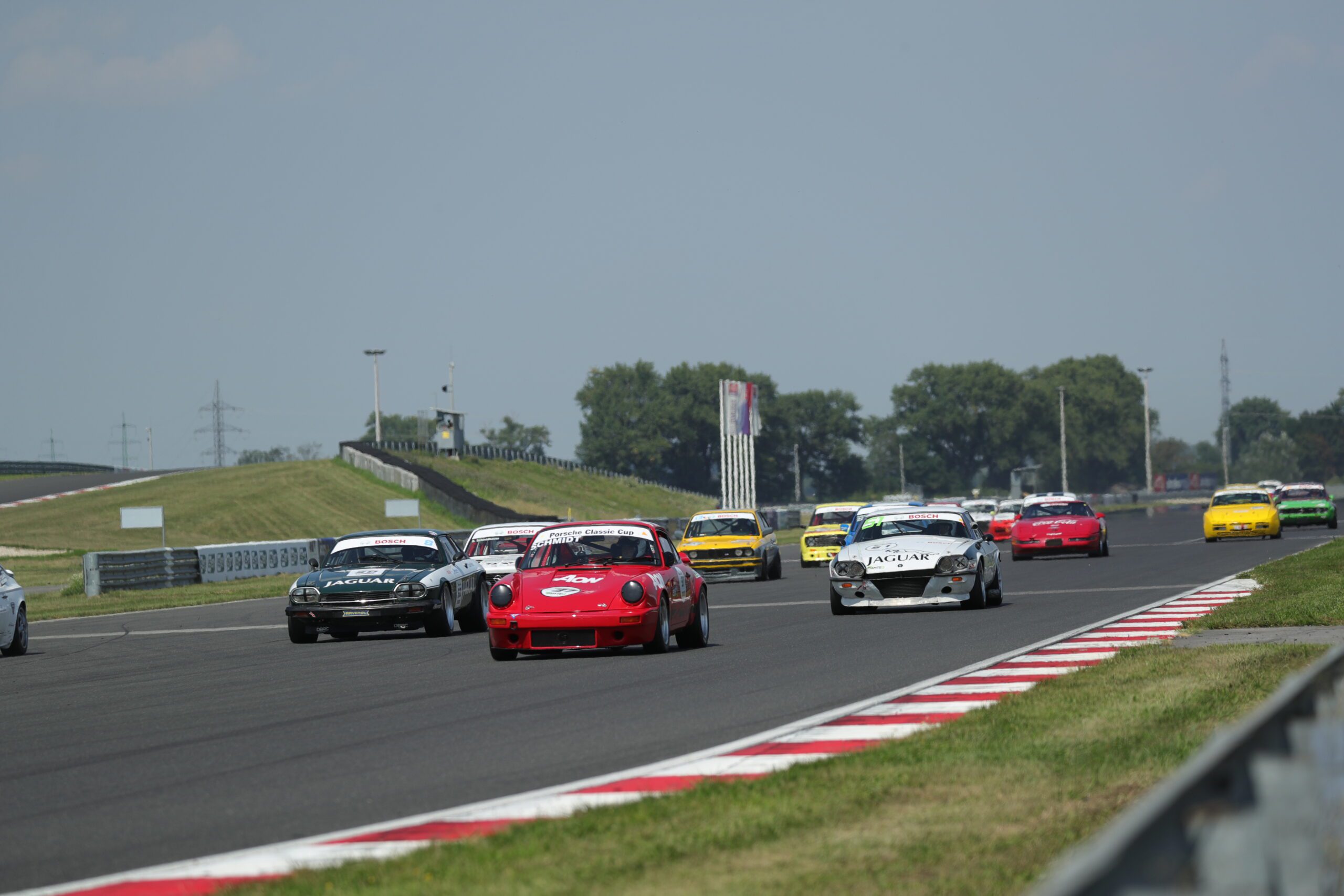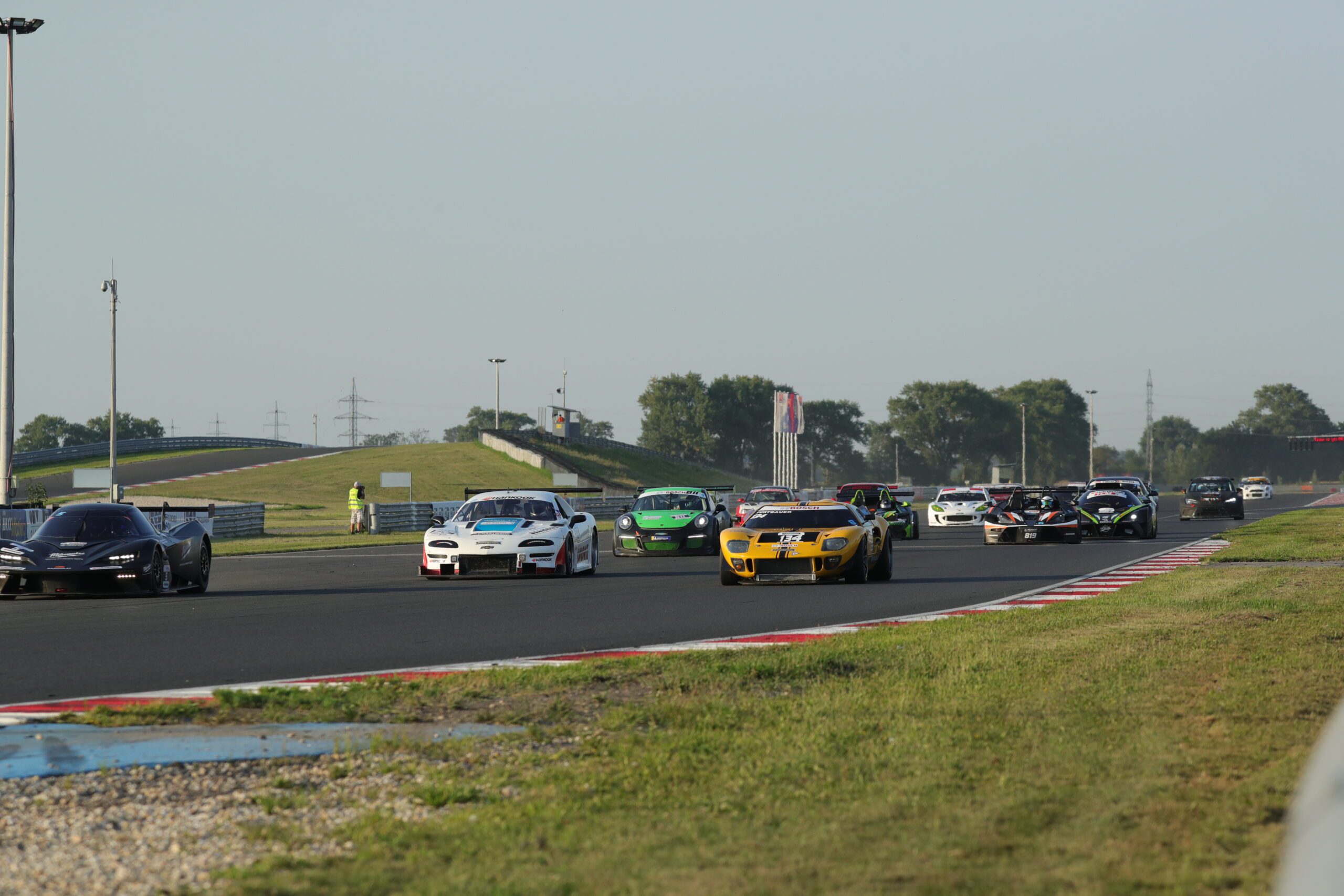 Die beiden „Amerikaner“ setzten sich sofort an die Spitze des Feldes, Urs Metzger, Plymouth Barracuda und Beat Gubler, Dodge Challenger, gefolgt von den schnellsten Anhang K Piloten David Becvar und Jaroslav Rejka, beide Jaguar XJS sowie dem Salzburger Josef Schößwendter, Porsche 944 Turbo und Günter Schmidt, Porsche 911SC.