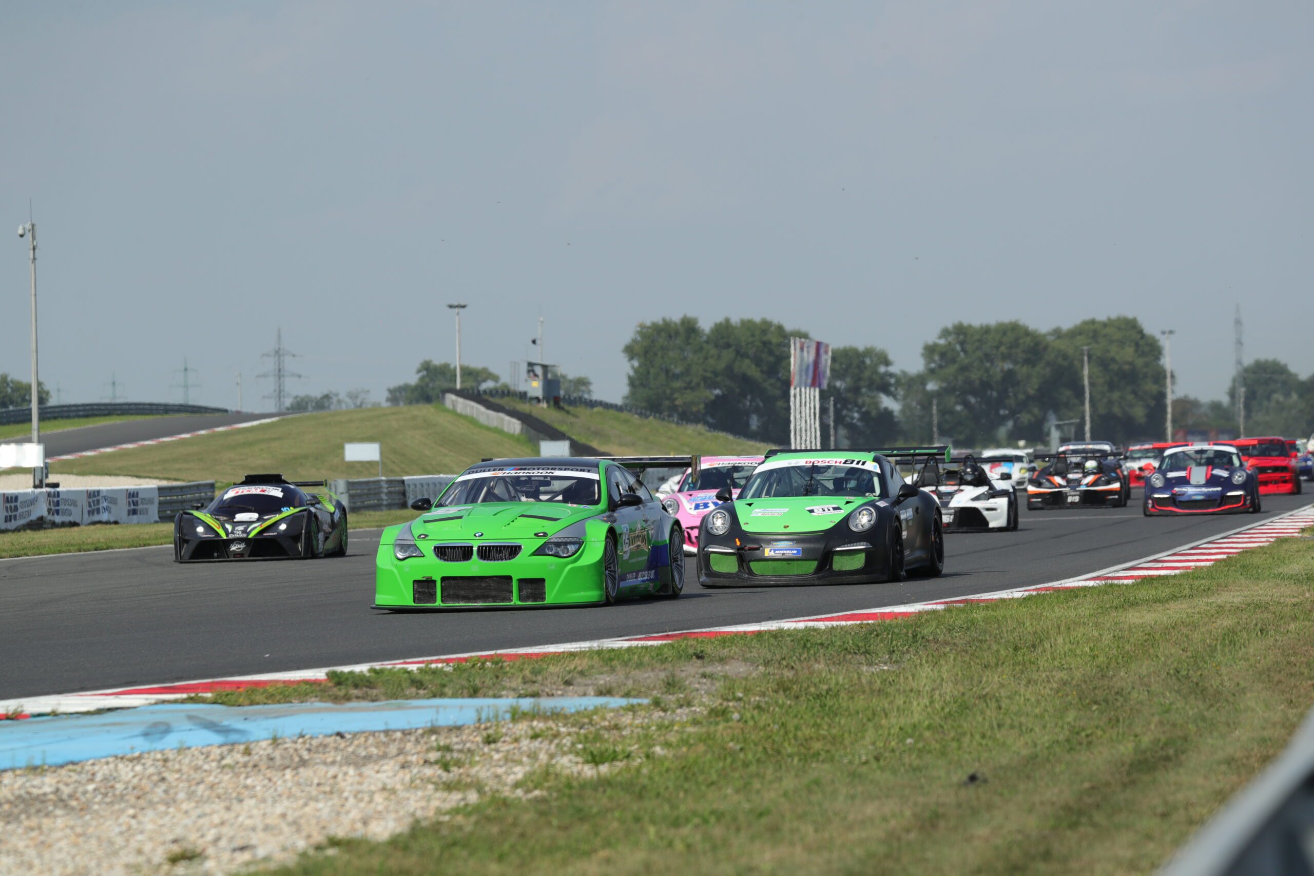 Polesetter Benjamin Dam vom Team Hoffman Motorsport setzt sich sofort in Führung vor dem jungen Salzburger Alexander Geier und Michael Fischer, der den Weissrussen Alexander Talkanitsa überholen konnte.